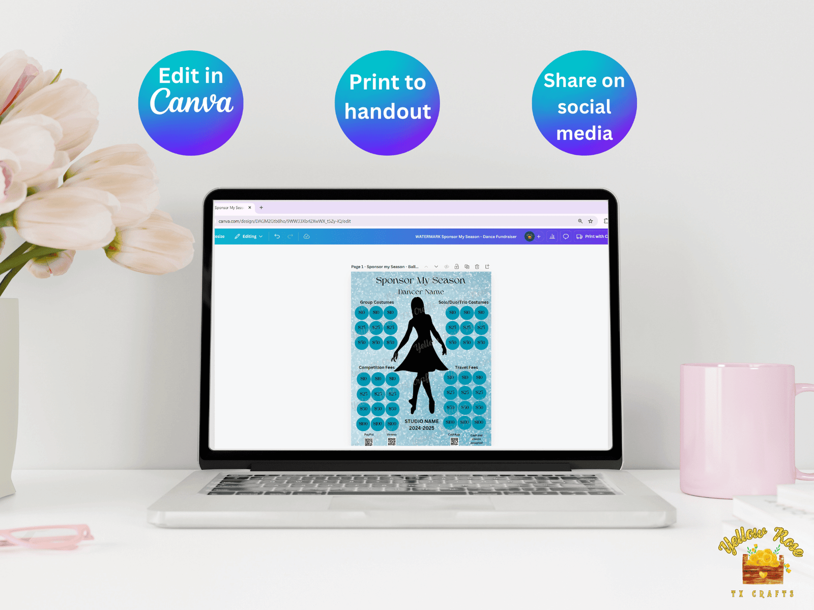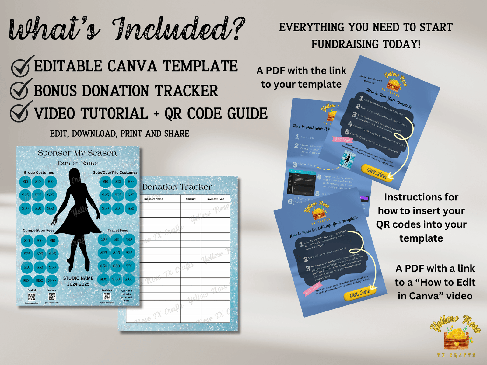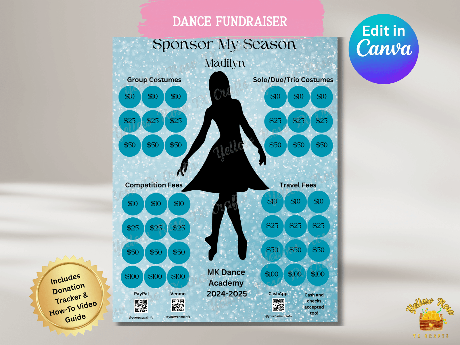 ✨ Editable Fundraiser Template: Personalize it with your name, studio info, and sponsorship levels in minutes using Canva. No design skills needed!