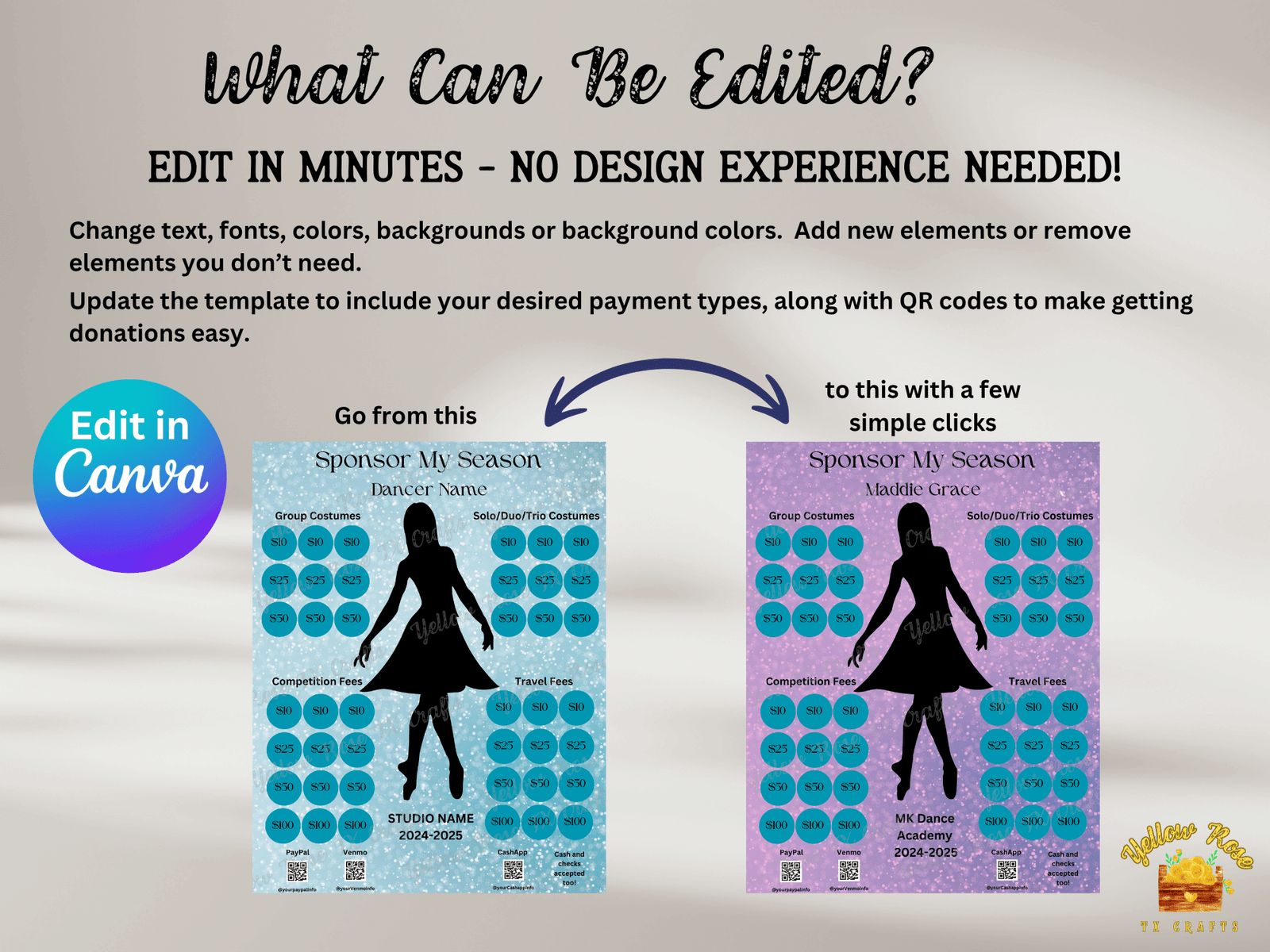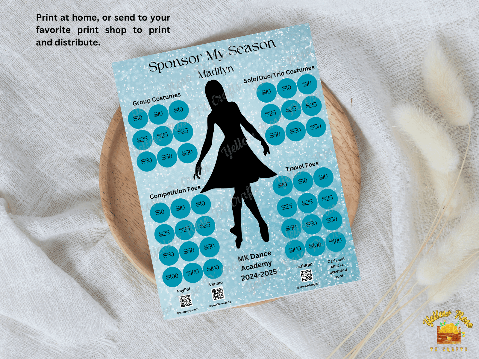 Effortlessly Raise Funds for Your Dance Season with Our Editable “Sponsor My Season” Fundraiser Printable Template!