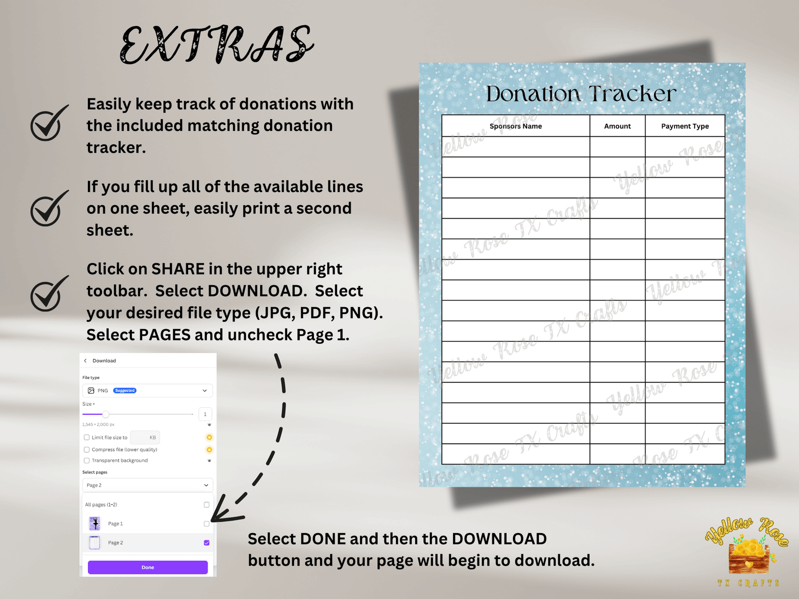 6. Edit colors, text, and donation details in Canva, then save and print or share online!