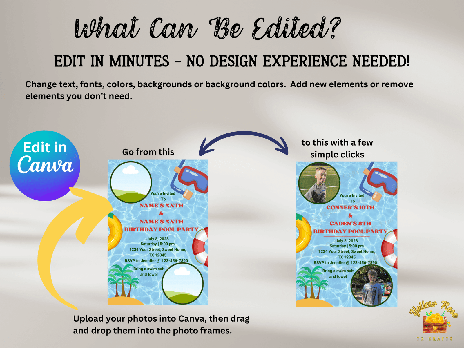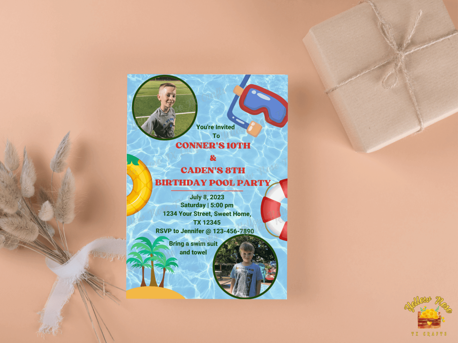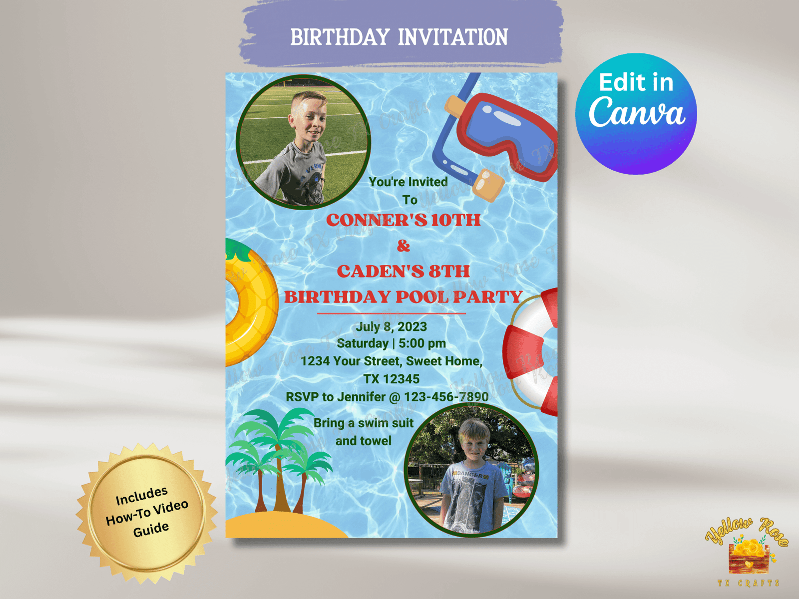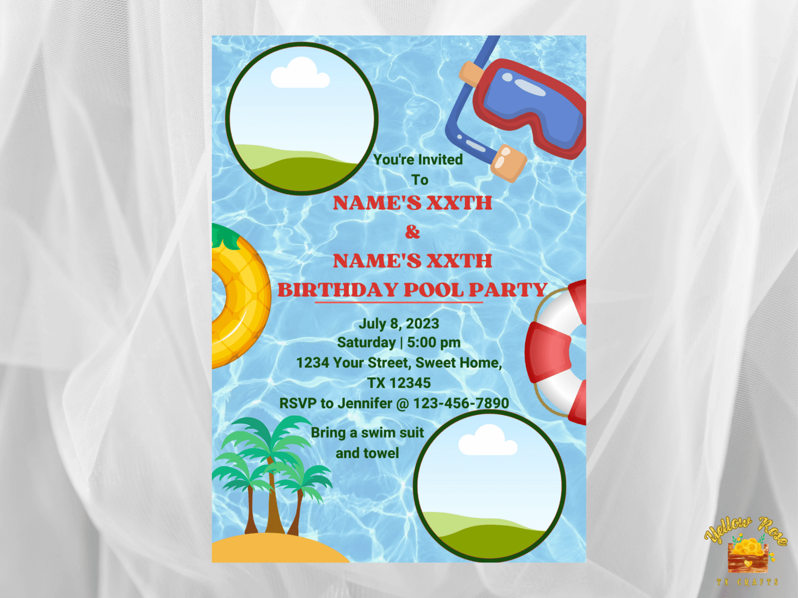 Double Birthday Pool Party Invitation - 5x7 Editable Canva Template - Birthday Invite Template Style 1Double Birthday Pool Party Invitation – 5×7 Editable Canva Template – Birthday Invite Template Style 1