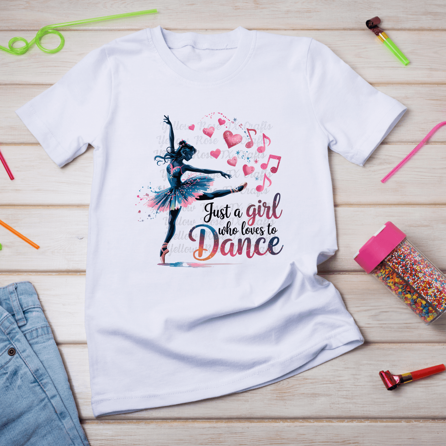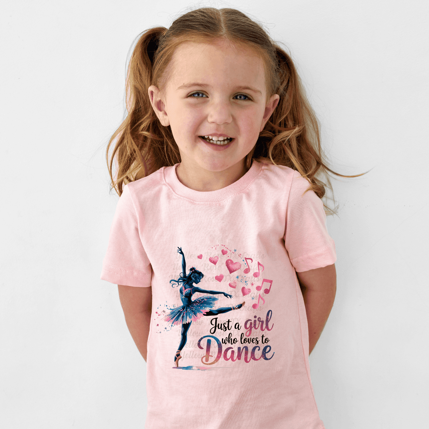 JUST A GIRL WHO LOVES TO DANCE – KIDS BALLET TEE (Toddler and Youth Sizes)