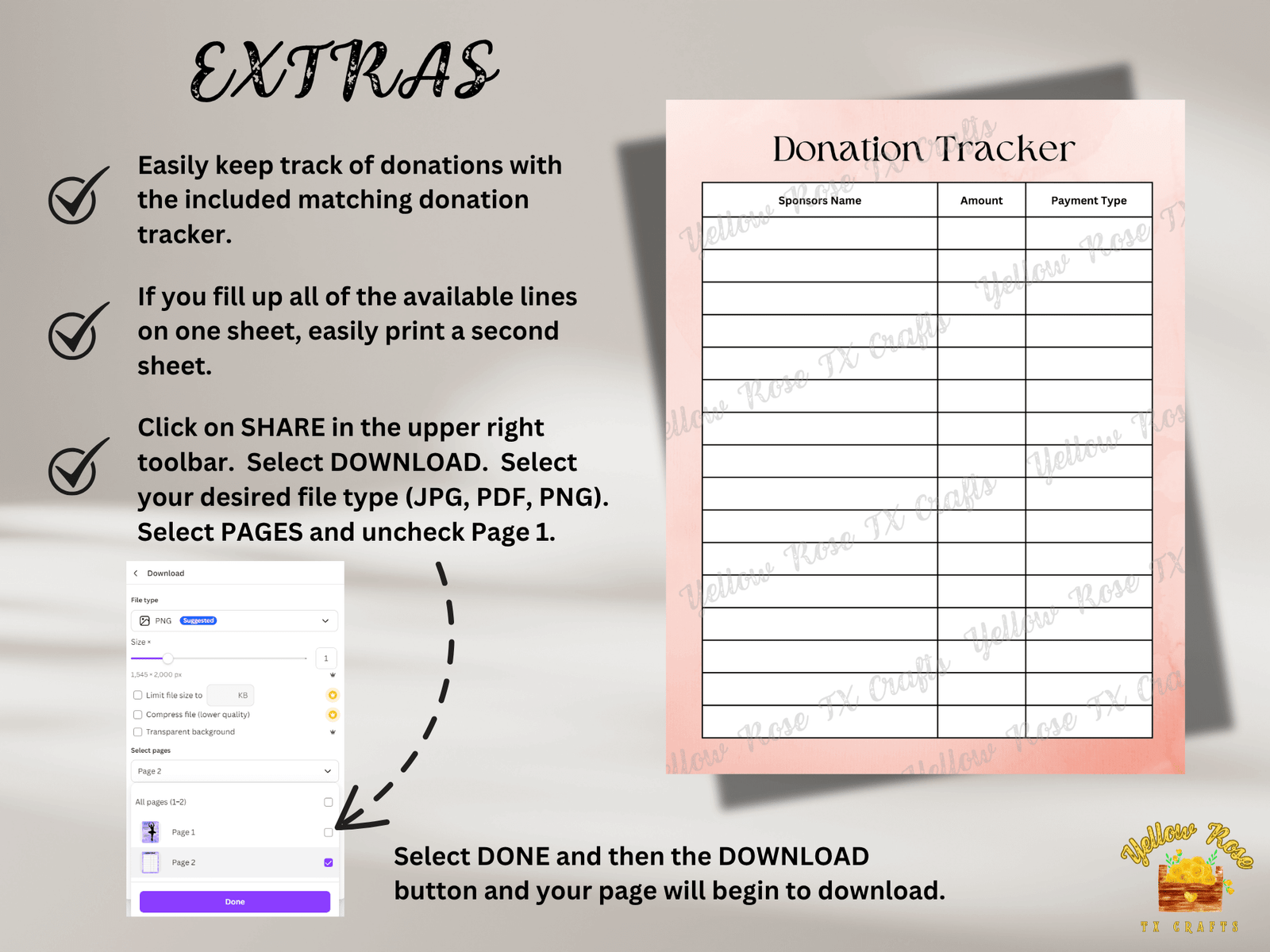6. Edit colors, text, and donation details in Canva, then save and print or share online!