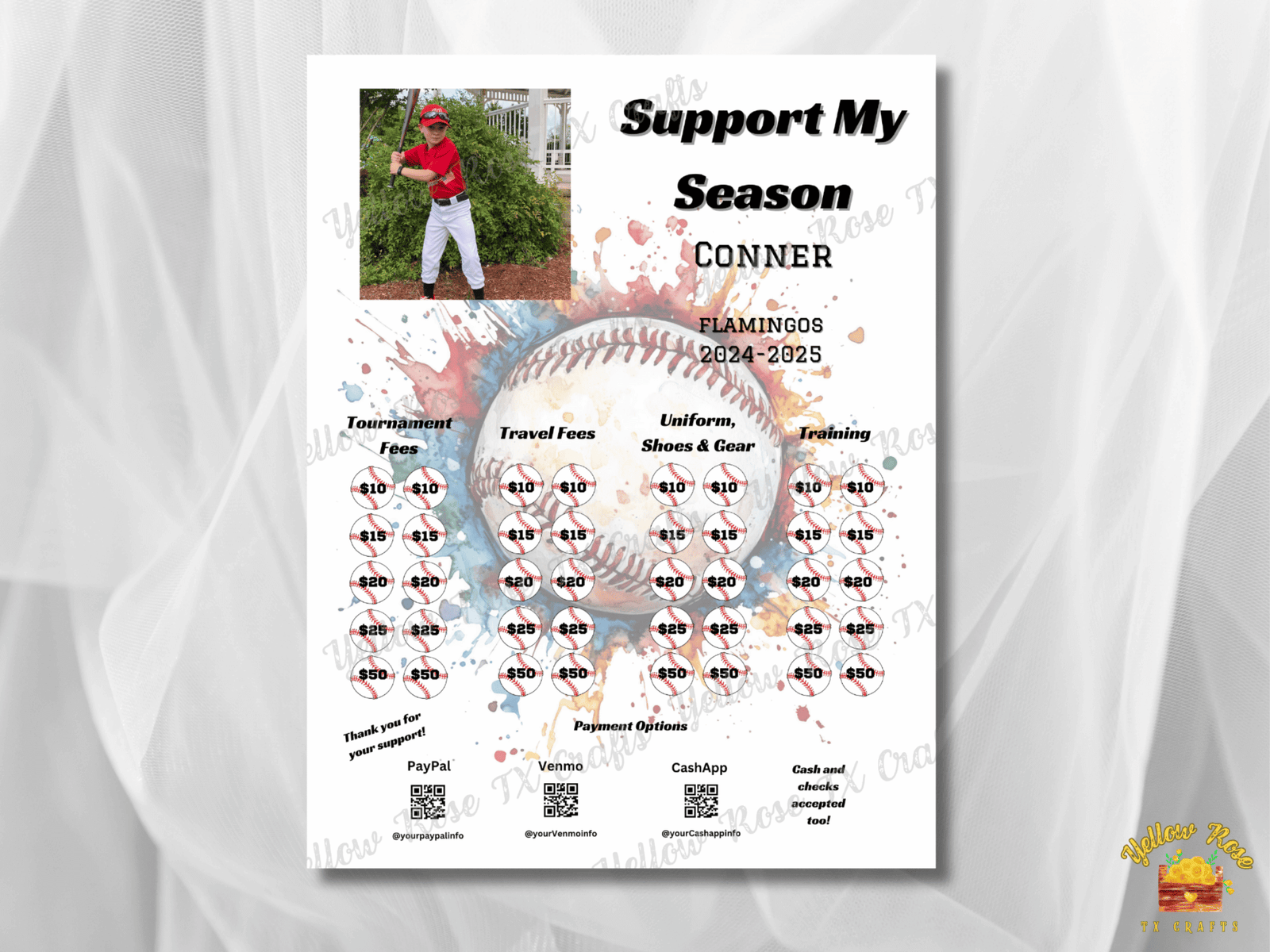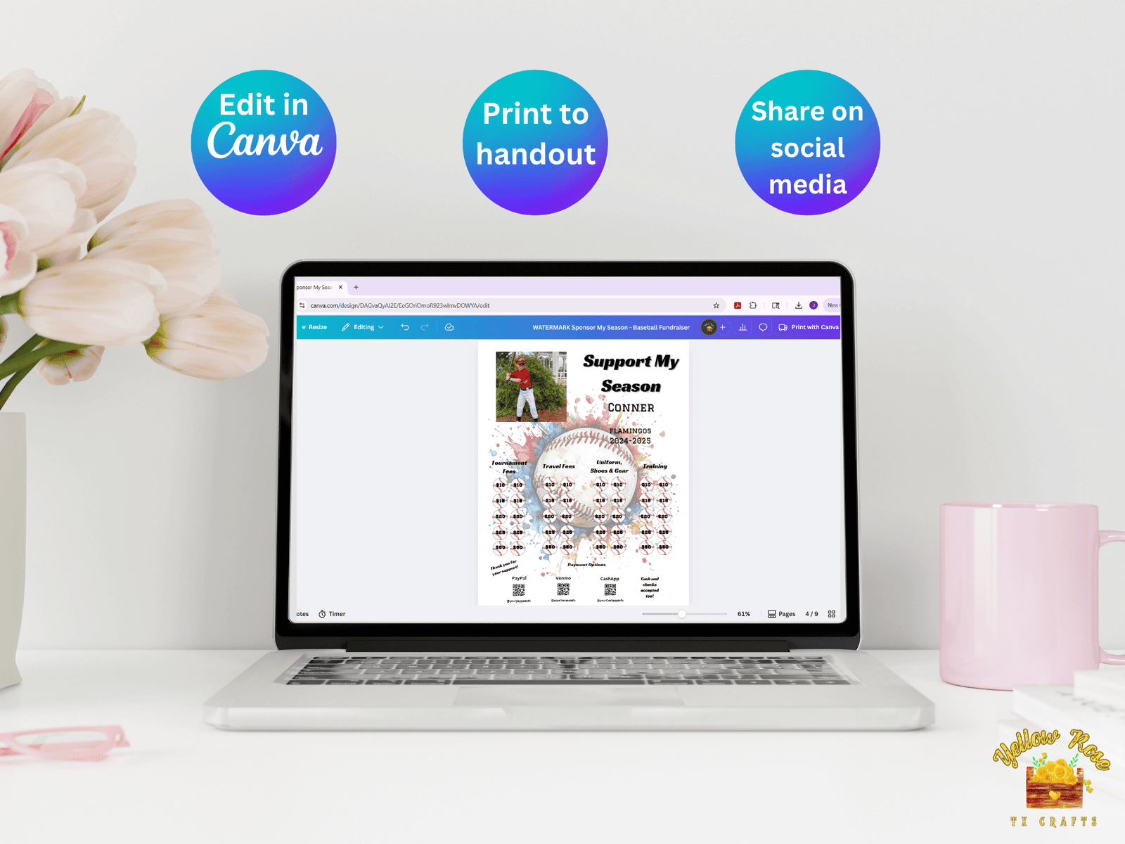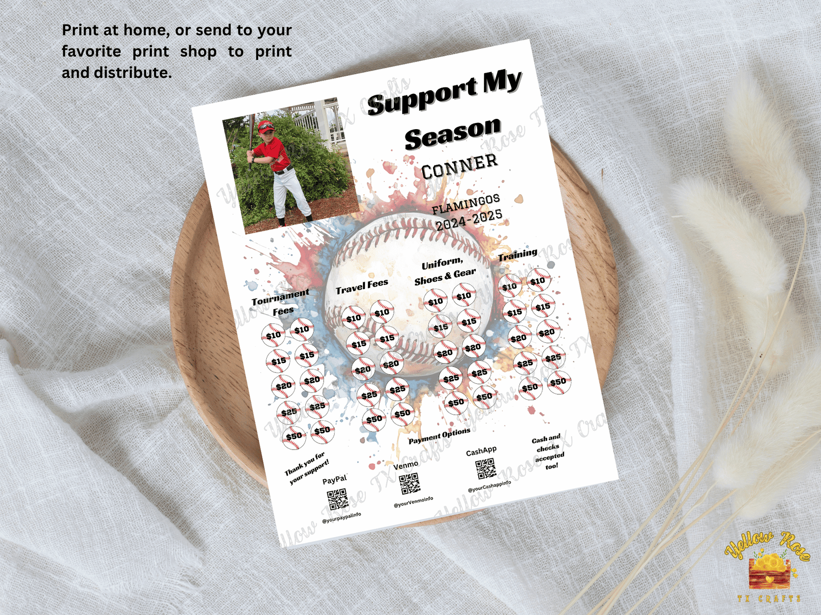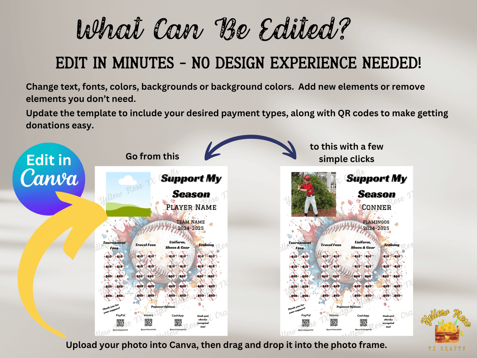 Effortlessly Raise Funds for Your Baseball Season with Our Editable “Support My Season” Baseball Fundraiser Template!